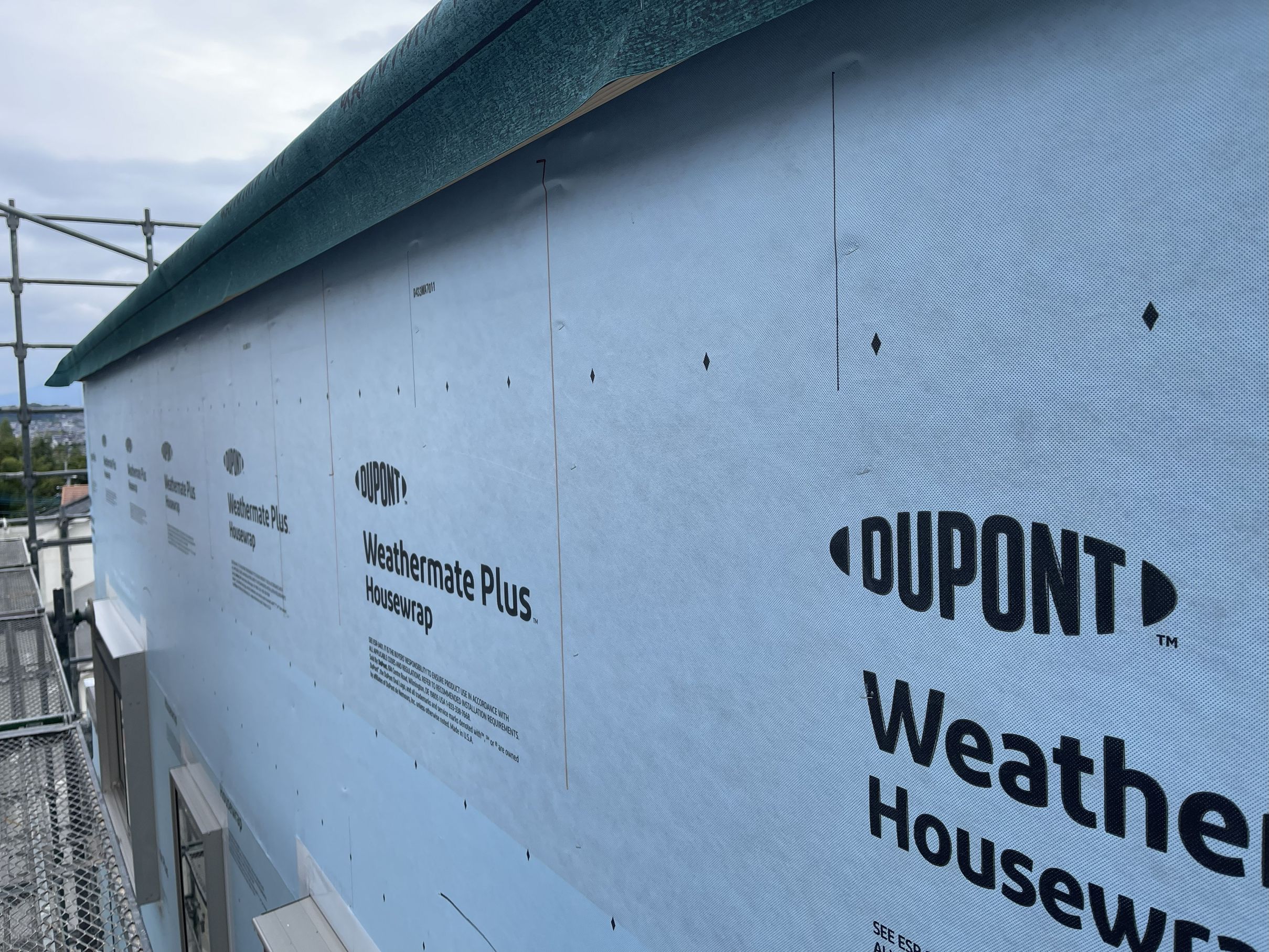 外壁にウェザーメイト・プラスを使用して「外気密」し、メンブレンを使用して「内気密」する